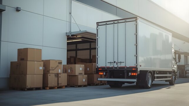 Delivery worker unloading cardboard boxes from van in warehouse with natural light and organized background during daytime operations. Ai generative