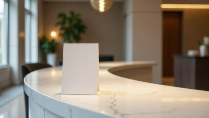 Warm wooden lobby with a clean logo placeholder on a corporate wall