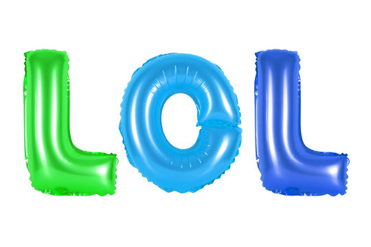 lol in english alphabet from colored (rainbow) balloons