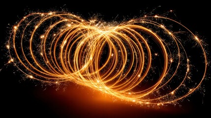 Sparkling Light Trails Creating Circular Patterns Against Black Background