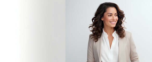 Smiling happy confident old mature professional business woman corporate leader, senior middle aged female executive, lady bank manager standing in office hallway arms crossed looking away, portrait.