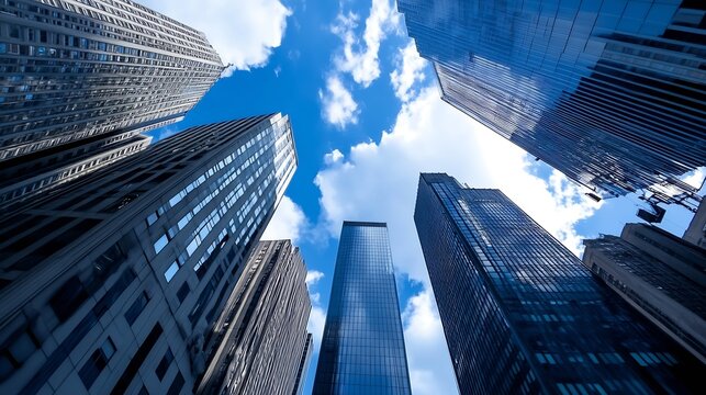 Looking Up Between Tall Buildings Towards Cloudy Blue Sky Images