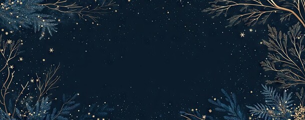 Set of blue and gold vector frames with winter tree branches, snowflakes, and a starry sky for a social media post template