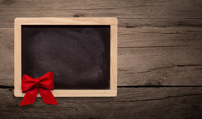 Kreidetafel Schild auf Holz Hintergrund mit Schleife aus Geschenkband