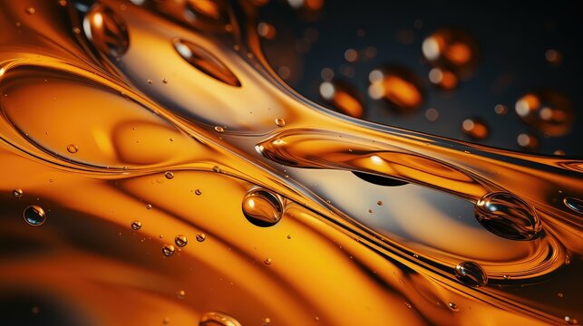 Shimmering viscous oil surface glossy ripples, droplets and deep blue amber highlights