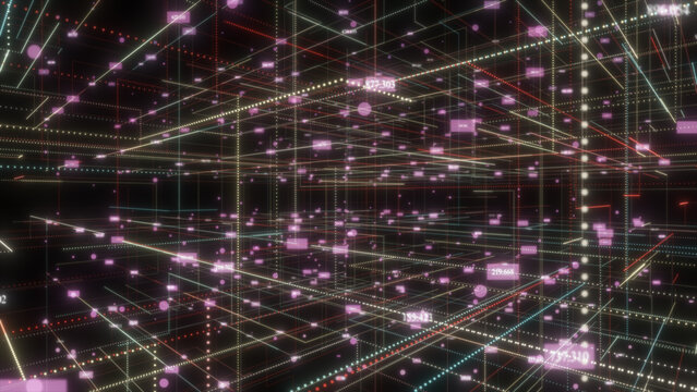 floating through Digital data network connection in digital cyberspace hi-tech technology bokeh background