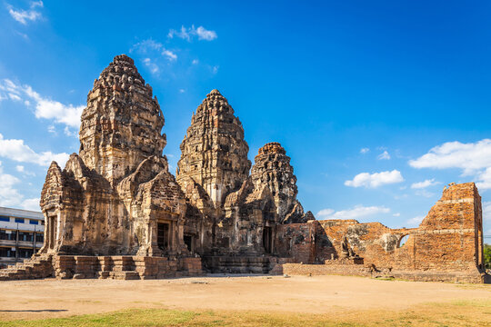 Phra Prang Sam Yot temple with monkey, ancient architecture in Lopburi, Thailand
