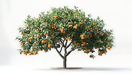 Isolated loquat tree with ripe fruits and green leaves against a white studio background shot in full view