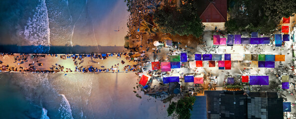 Aerial view of Chaloklum Sunday night market on Koh Phangan island, Thailand.