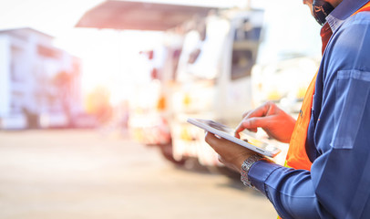 Logistics manager controlling truck driver schedule