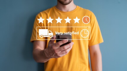 Delivery truck with holographic interface displaying logistics map and delivery icons transportation
