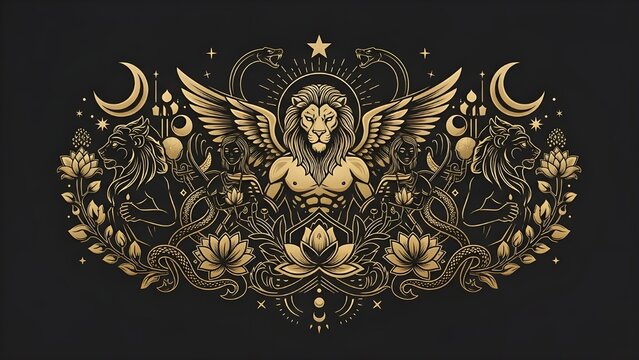 A golden intricate lotus flower design hovers over a soft white background casting a gentle shadow below