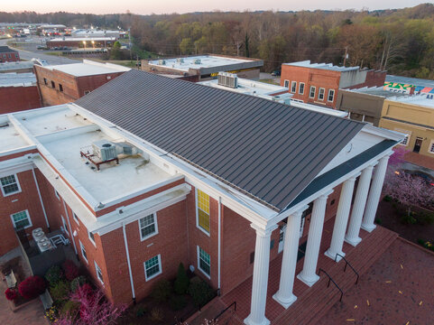Sunrise Aerial Drone Image of the Franklin County (NC) Courthouse in Downtown Louisburg, North Carolina, USA