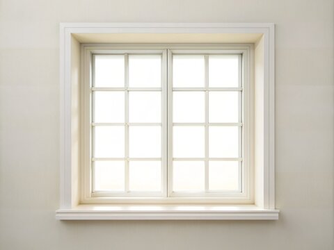 Serene puffy clouds viewed through open window frame
