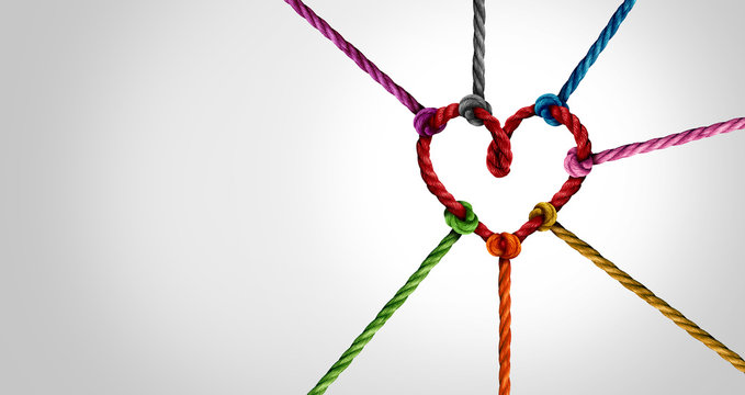 Love heart made from pins and string. Online dating, connection concept