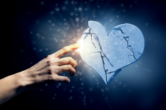 Inspirational motivational quote - In times of brokenness, you will find God's strength and power. Spiritual message on sky with dramatic clouds and sunset light background.
