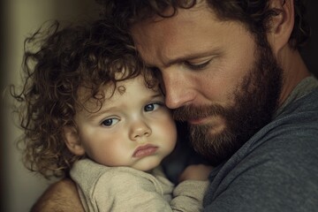 A close-up of a father lovingly hugging his child, showcasing the warmth and tenderness of parenthood.