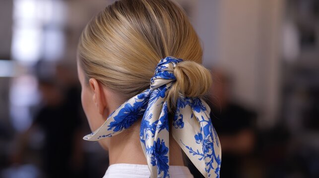 A person with a classic low chignon, featuring neatly twisted hair gathered at the nape of the neck, giving a timeless and elegant look