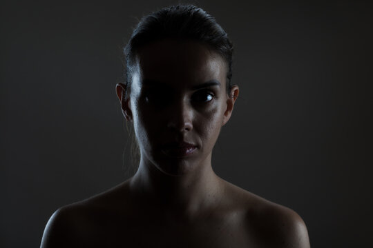 Low Light Silhouette of a Flat Apple, Dark Background, Minimalist Fruit Photography
