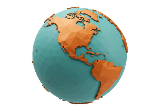 Stylized low poly crystal globe showing North and South America on blurred green nature background