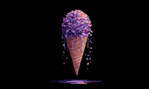 A glowing neon blue ice cream cone, intricate lines and dots. Futuristic low-poly network design. Blends technology, innovation, and future food experiences.