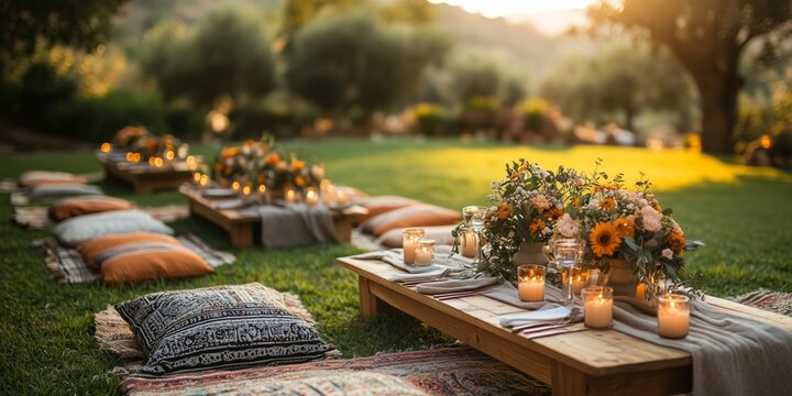 Candlelight glow on low table with tall tapers and votive candles creating cozy ambience