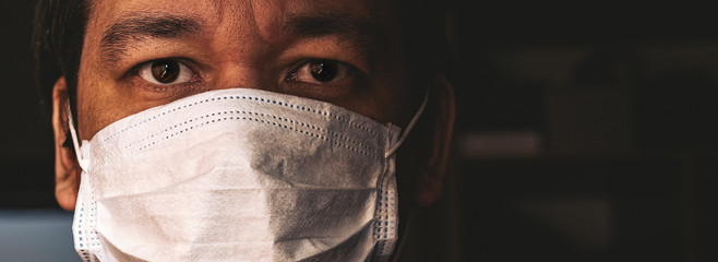 Closeup of man in mask, concept of viral infection. Theme of corona-virus epidemic.