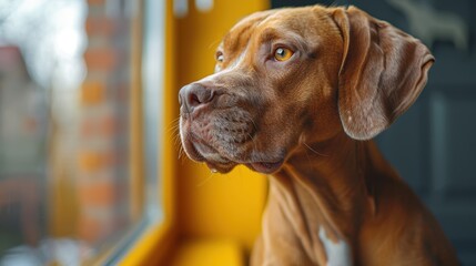 Adorable German Shepherd dog enjoying a day outdoors on sunset background, showcasing loyalty and happiness