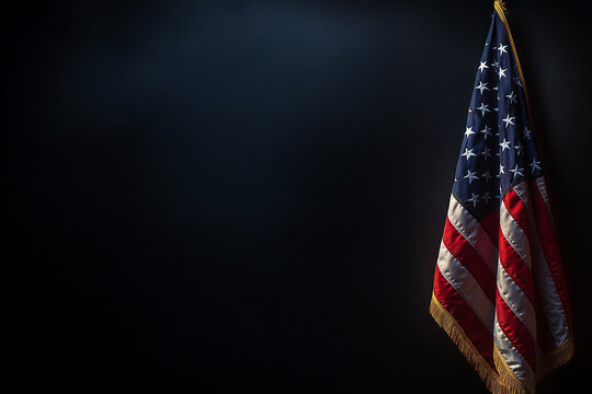 Celebrating American Pride, Labor Day, Memorial Day, and Veterans Day with a Striking US Flag on Dark Background. Generative AI