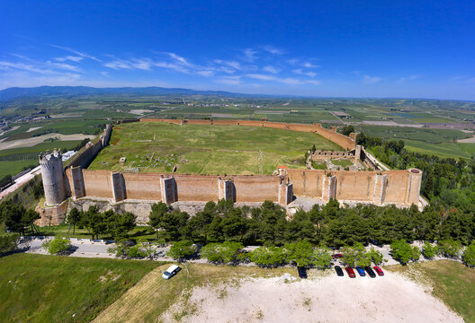 Aerial drone photo of the old castle walls in Lucera, Italy.