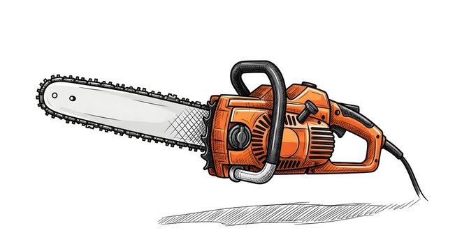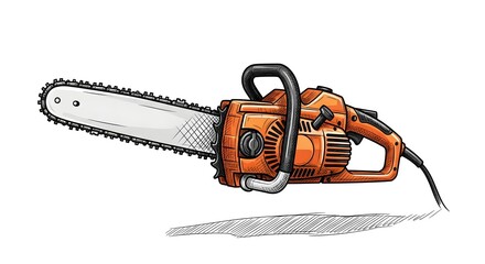 Illustration of an Electric Chainsaw, Featuring a Sharp Blade and Orange Body, Designed for Efficient Wood Cutting, Tree Felling, and Yard Work, Perfect for DIY Projects and Professional Use