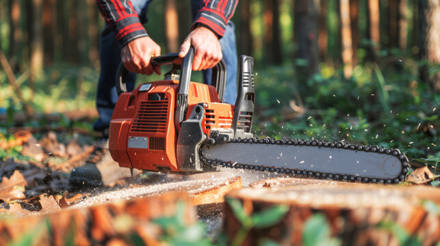 Lumberjack Using Chainsaw For Efficient Tree Cutting In Forest Images