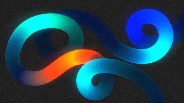 Luminescent light ribbons flowing across dark field abstract futuristic motion background