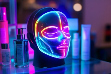 Futuristic female face with glowing neural network overlay and luminescent bokeh