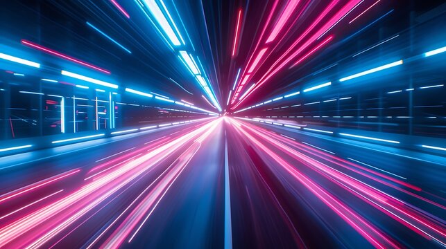 Neon light speed effect blue pink white lines moving upward on black background