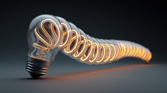 Unique Spiral Light Bulb with Glowing Filaments on Dark Background
