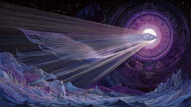 Discover ethereal cosmic energy and sacred geometry patterns glowing with divine light and stardust