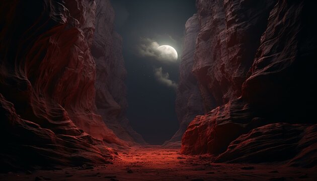 A moonlit cave, illuminated by the full moon