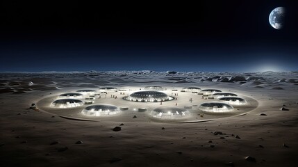 Futuristic Lunar Base Against Majestic Moon Landscape at Night
