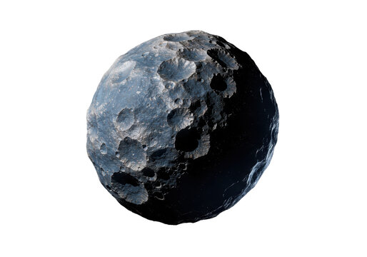 Isolated celestial asteroid with craters and rugged surface in outer space simulation render