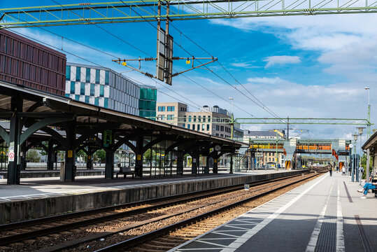 Lund, Sweden - July 2021: Lund Cathedral and bell tower building in central Lund on a summer day, Sweden, south of Lund Cathedral in Skane.