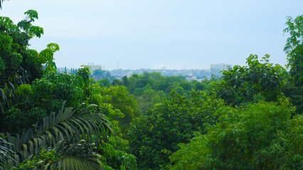 Misty Rainforest with Lush Green Canopy.