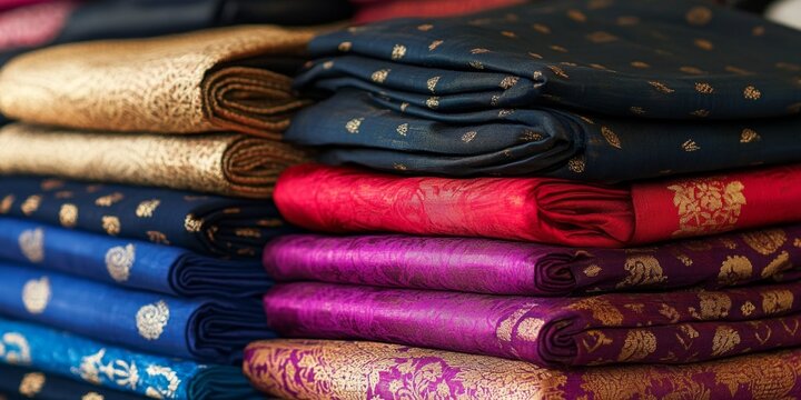 Elegant Eastern Textile Pattern: Luxurious Silk Scarf Design with Traditional Indian Motifs. Decorative Folded Fabric Showcasing Cultural Heritage and Artistic Craftsmanship. Perfect for Fashion, Adve
