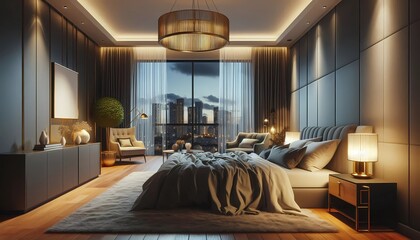Luxury penthouse terrace overlooking urban skyline with stylish decor
