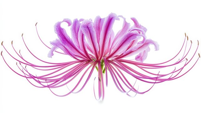 Vibrant pink lycoris radiata lily with elegant curved petals on white background