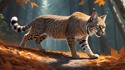 Bobcat The Bobcat moves like a shadow, stepping carefully over crunchy, colorful leaves