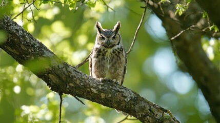 A solitary woodland animal like a squirrel or owl perched on a tree branch.