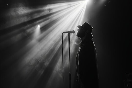 A singer passionately performing on stage, with a spotlight highlighting their expression No text or alphabet on image