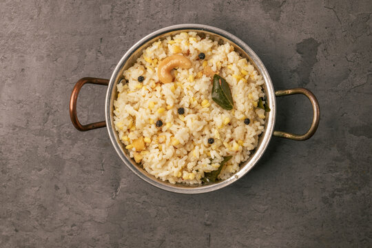 Fresh made Ven Pongal with Sambar served as a break fast in tamilnadu. Fresh pongal with sambar main break fast and dinner south indian dish
