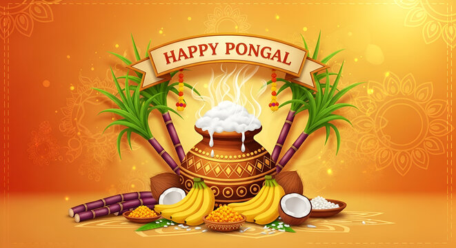 happy pongal day tamil nadu traditional indian festival background, diwali, makar sankranti